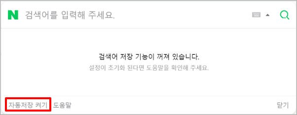 • 검색창을 누른 후 아래의 자동저장 켜기 버튼을 사용해 최근검색어 기능을 다시 사용할 수 있어요.